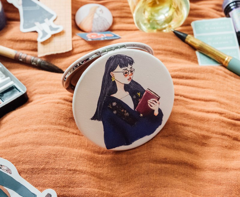 Lifestyle | Portable leather small round mirror: Dark blue flower season girl