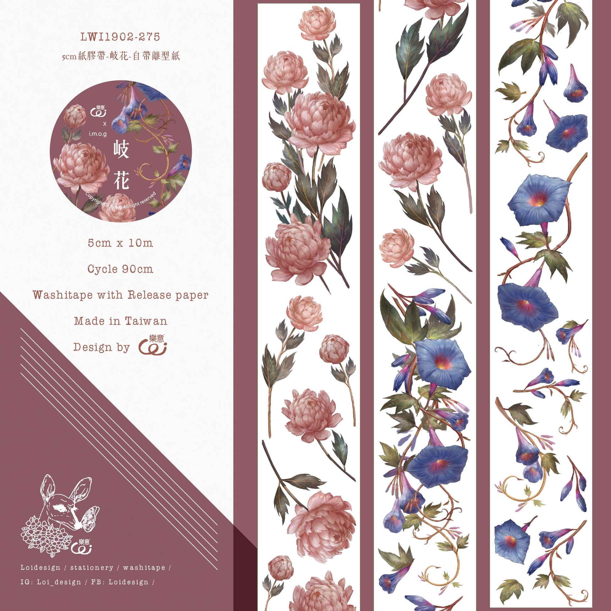 Washi Tape | Ipomoea & Peony (5cm)